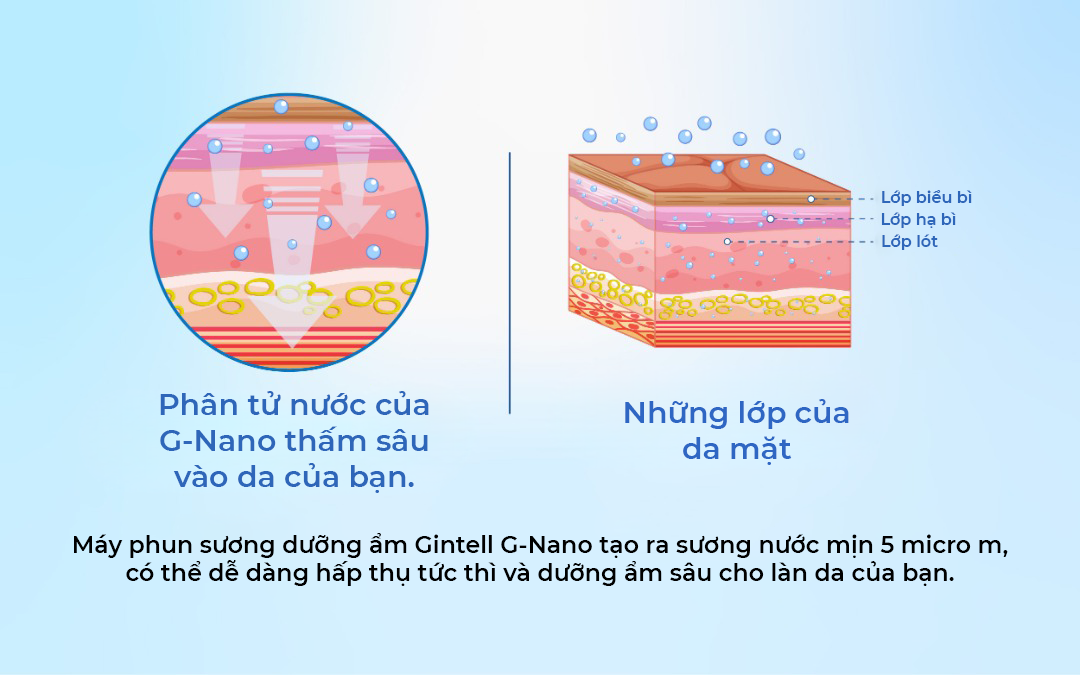 - Sức chưa nước 25ml, đơn giản dễ sử dụng G-Nano tạo ra lớp sương nhẹ, mịn thẩm thấu sau từ ngoài vào các lớp biểu bì da bên trong. Giúp da hấp thụ tốt hơn và dưỡng ẩm sau cho làn da luôn căng mịn. THỐNG SỐ KỸ THUẬT