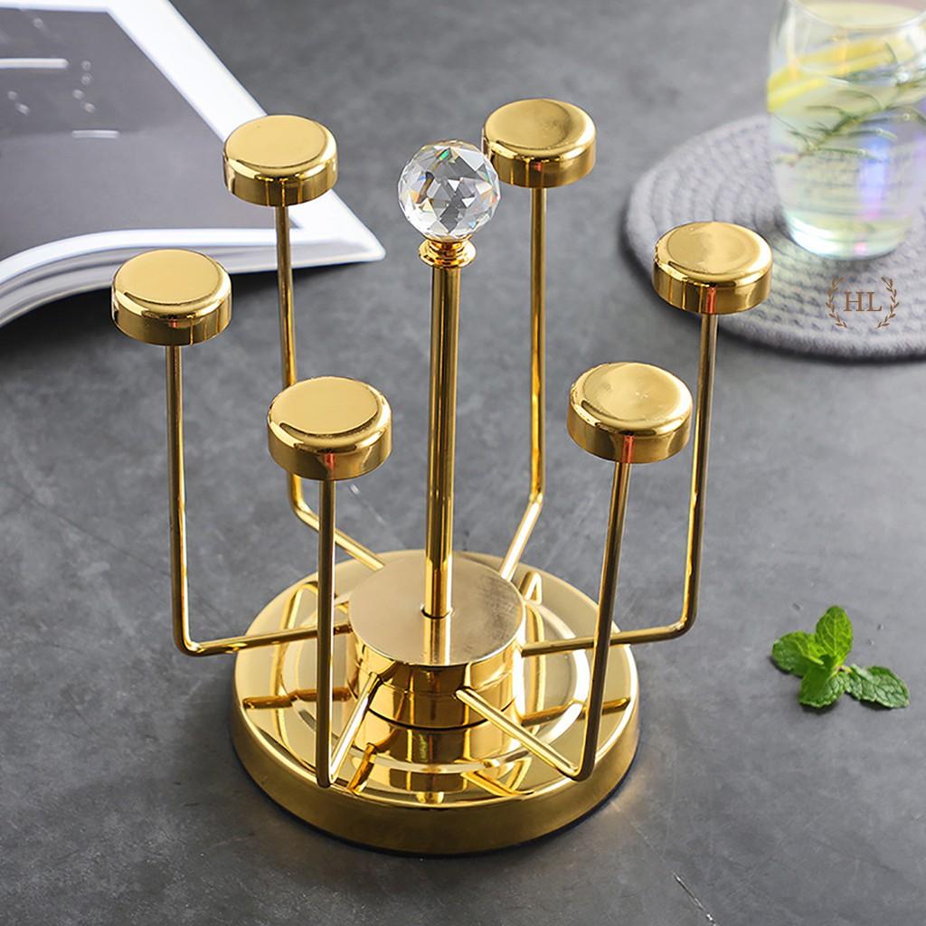 Giá cắm 6 chiếc cốc dạng gọn (CL95965) Giá có khay hứng nước Chất liệu sắt sơn tĩnh điện cao cấp màu vàng cực sang chảnh Dễ vệ sinh, không bị hoen rỉ Kiểu dáng