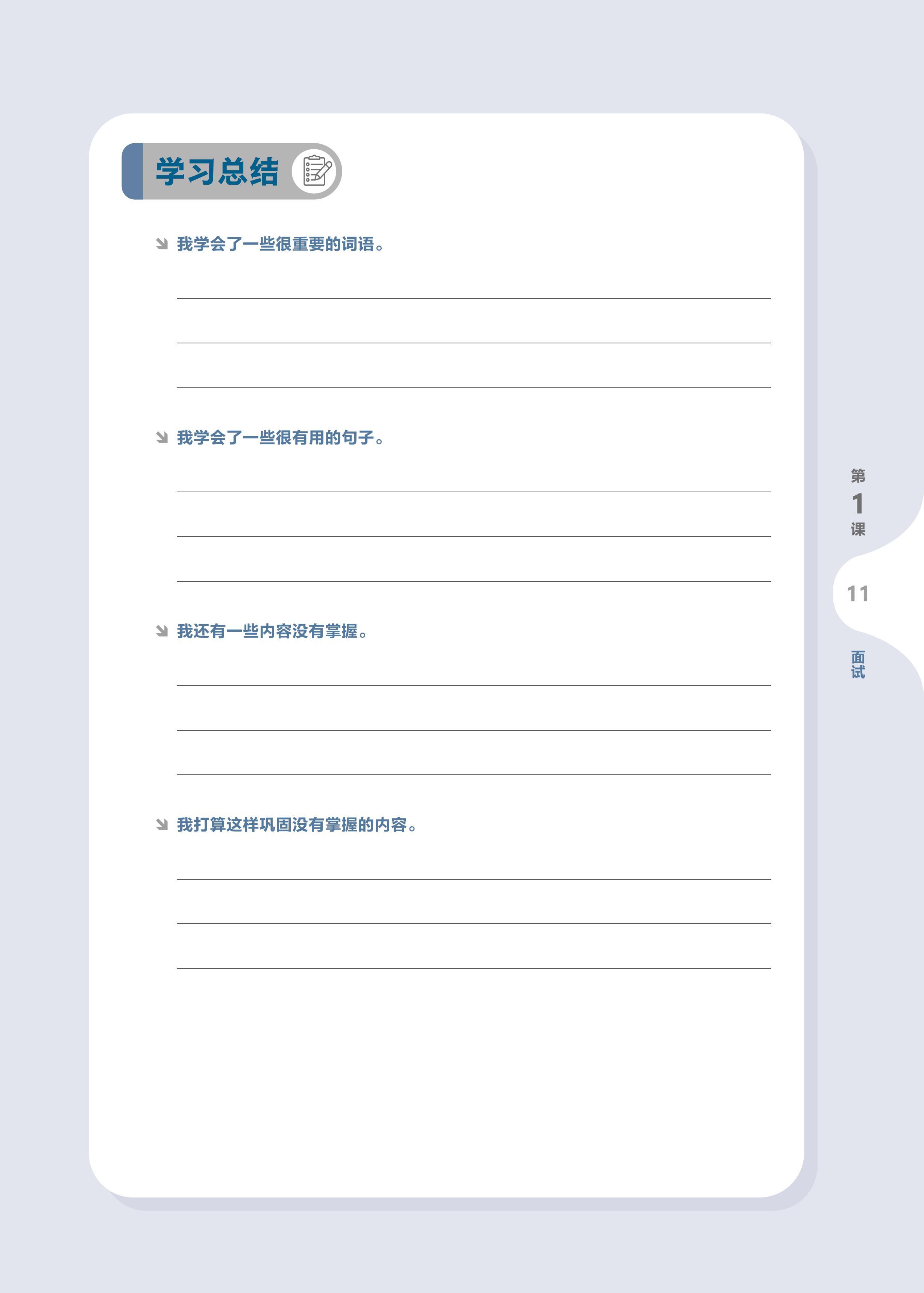 • Từ ngữ và Hội thoại: Nội dung cốt lõi của mỗi bài. Mỗi bài học hai đoạn hội thoại liên quan đến chủ đề bài học, thúc đẩy tình tiết câu chuyện phát triển, đồng thời nắm vững các từ ngữ trọng điểm liên quan, đặc biệt là các từ ngữ thường dùng trong môi trường kinh doanh.