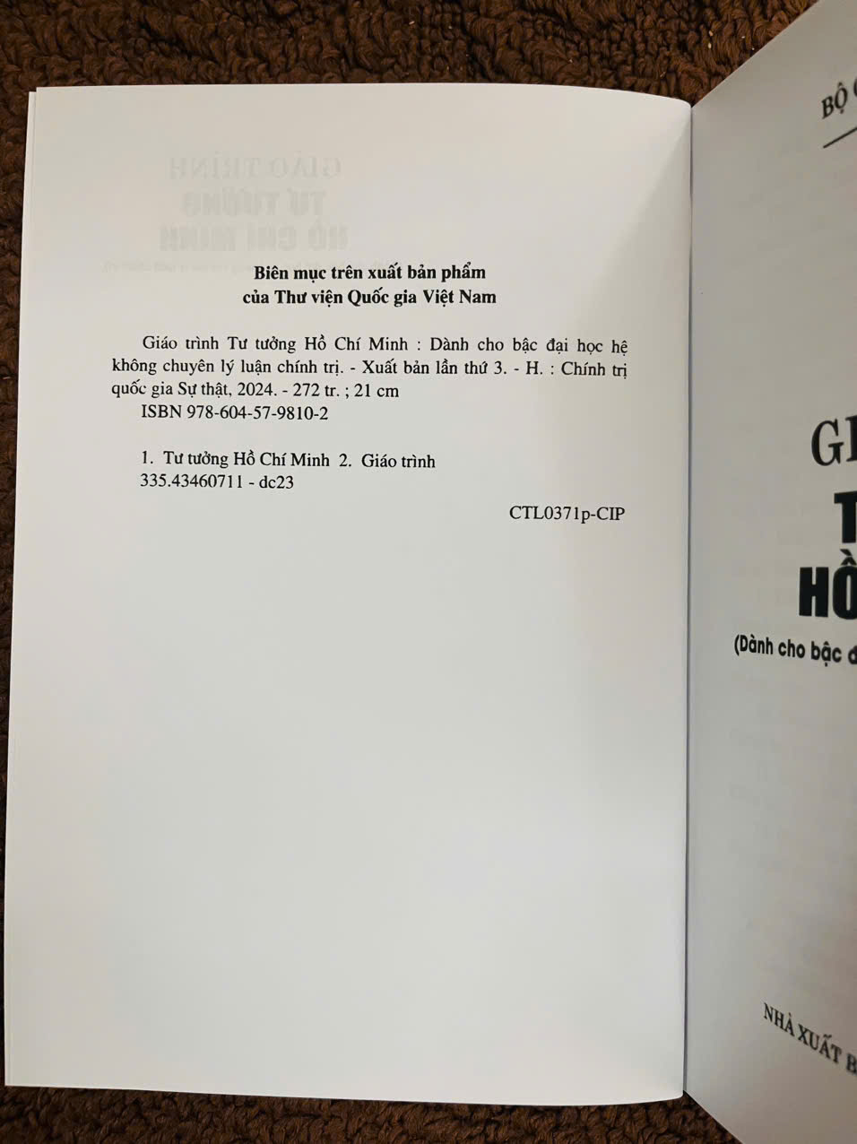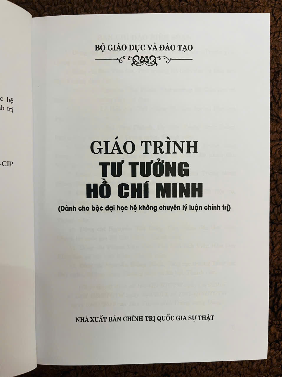 Nhà xuất bản Chính trị quốc gia Sự thật Tác giả: GS.TS. Mạch Quang Thắng (Chủ biên) Năm xuất bản: 6/2021 Số trang: 272 Giáo trình Tư tưởng Hồ Chí Minh - Dành cho bậc