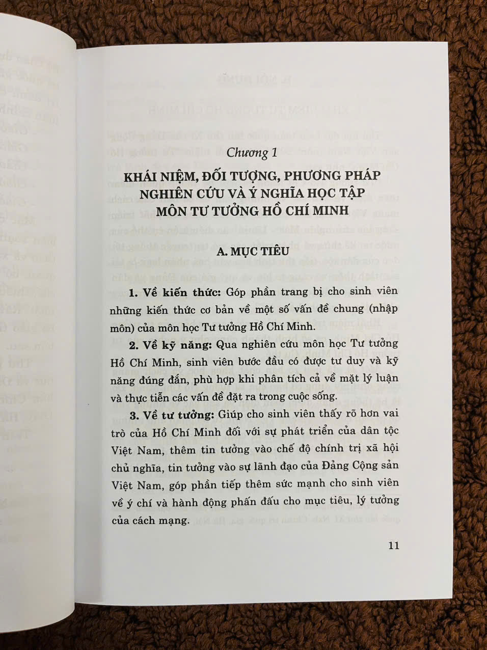 Chương 1 đề cập những vấn đề chung nhất của môn học (khái niệm, đối tượng, phương pháp nghiên cứu và ý nghĩa học tập môn Tư tưởng Hồ Chí Minh).