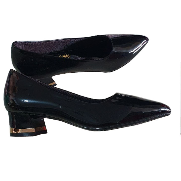 Giày cao gót da bóng đen 3cm Trường Hải