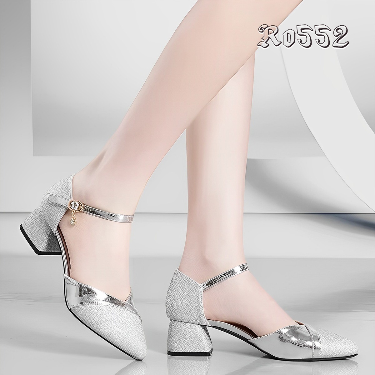 Giày cao gót nữ đẹp đế vuông 4 phân hàng hiệu rosata hai màu đồng bạc thời trang cao cấp ro552