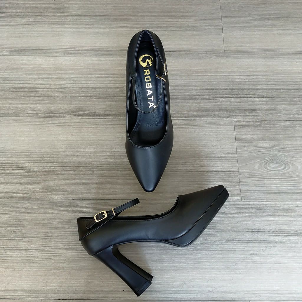 Giày cao gót nữ đẹp đế vuông 8 phân hàng hiệu rosata màu đen ro322