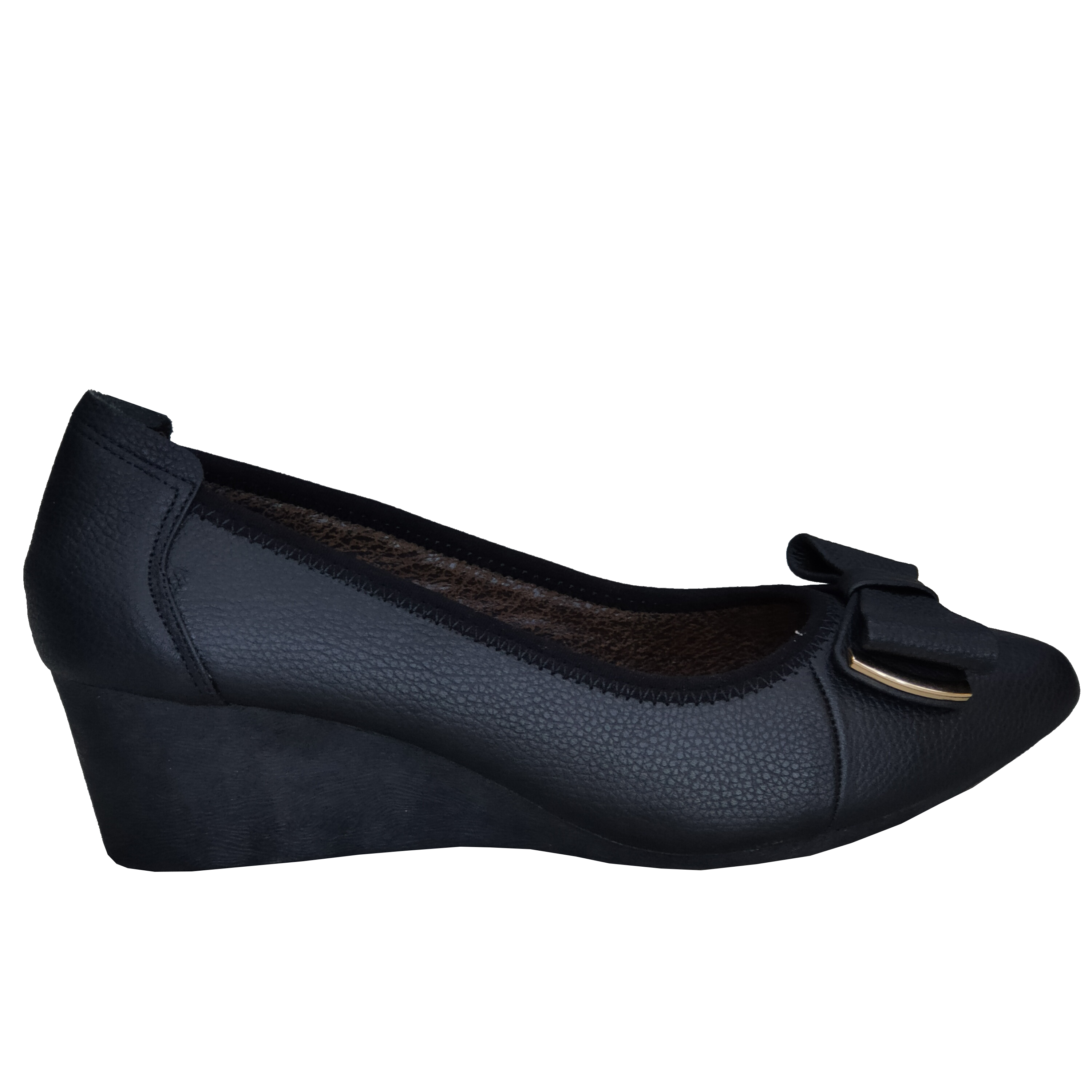 Giày đế xuồng 5cm da bò thật mũi nhọn màu đen