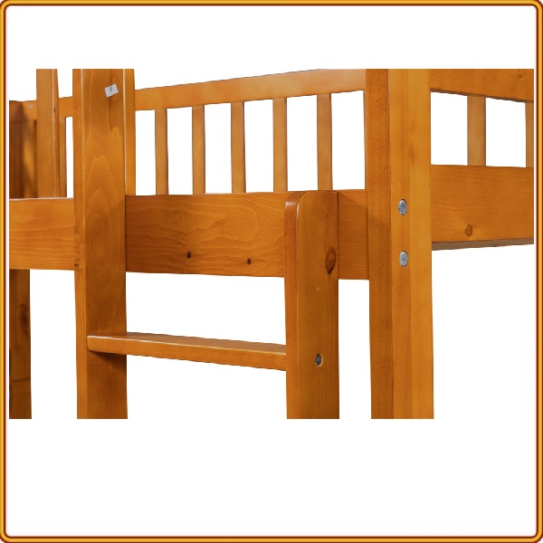 Giường tầng xuất khẩu Derby có kích thước lọt lòng giường trên/dưới là 100x193 cm / 120 x 193 cm, phủ bì 206x128x178 cm. Khoảng cách giữa 2 tầng là 98 cm, cầu thang có