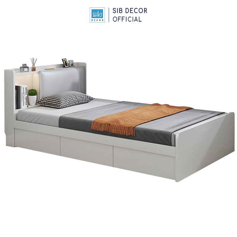 Sản phẩm chỉ bao gồm 1 giường đơn, không kèm các phụ kiện khác. - Chất liệu gỗ MDF loại 1 cao cấp đạt tiêu chuẩn E1 nhập khẩu Singapore được phủ Melamine chống thấm,