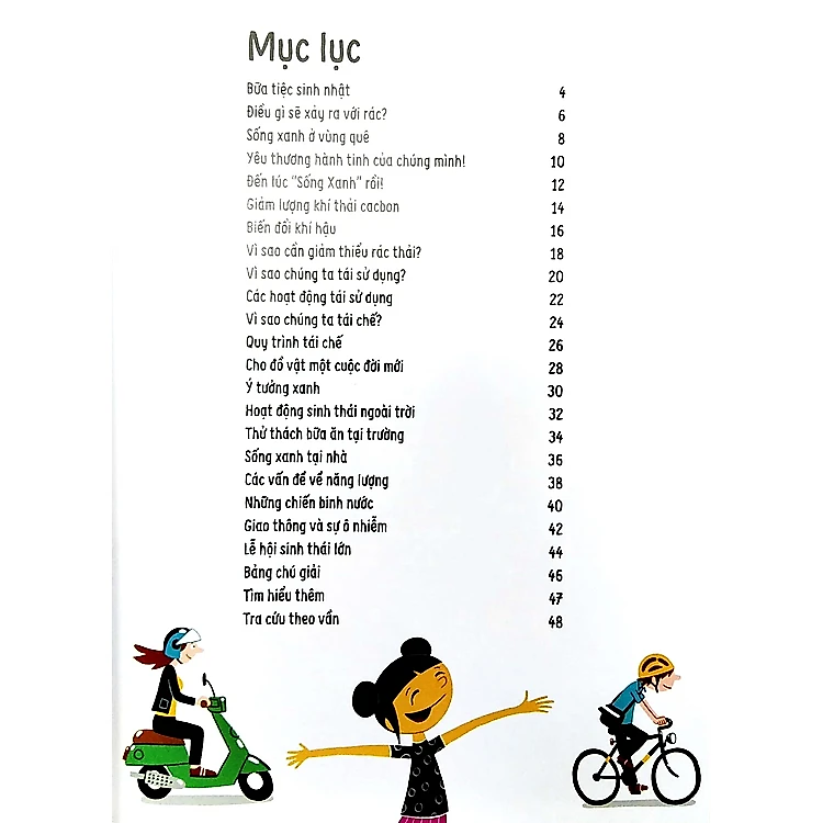Qua những cuộc trò chuyện với thầy cô giáo và người dân địa phương, các bạn nhỏ khám phá ra nhiều cách mà mình có thể bắt tay vào thực hiện ngay để cứu giúp hành tinh này, như đi bộ tới trường, hay làm những bữa trưa không rác thải. Thuộc loạt sách GO GREEN! về chủ đề môi trường dành cho các bạn nhỏ, “CHÚNG MÌNH CÙNG SỐNG XANH là một cuốn sách thú vị đầy ắp ý tưởng thông minh về giảm thiểu, tái sử dụng và tái chế.