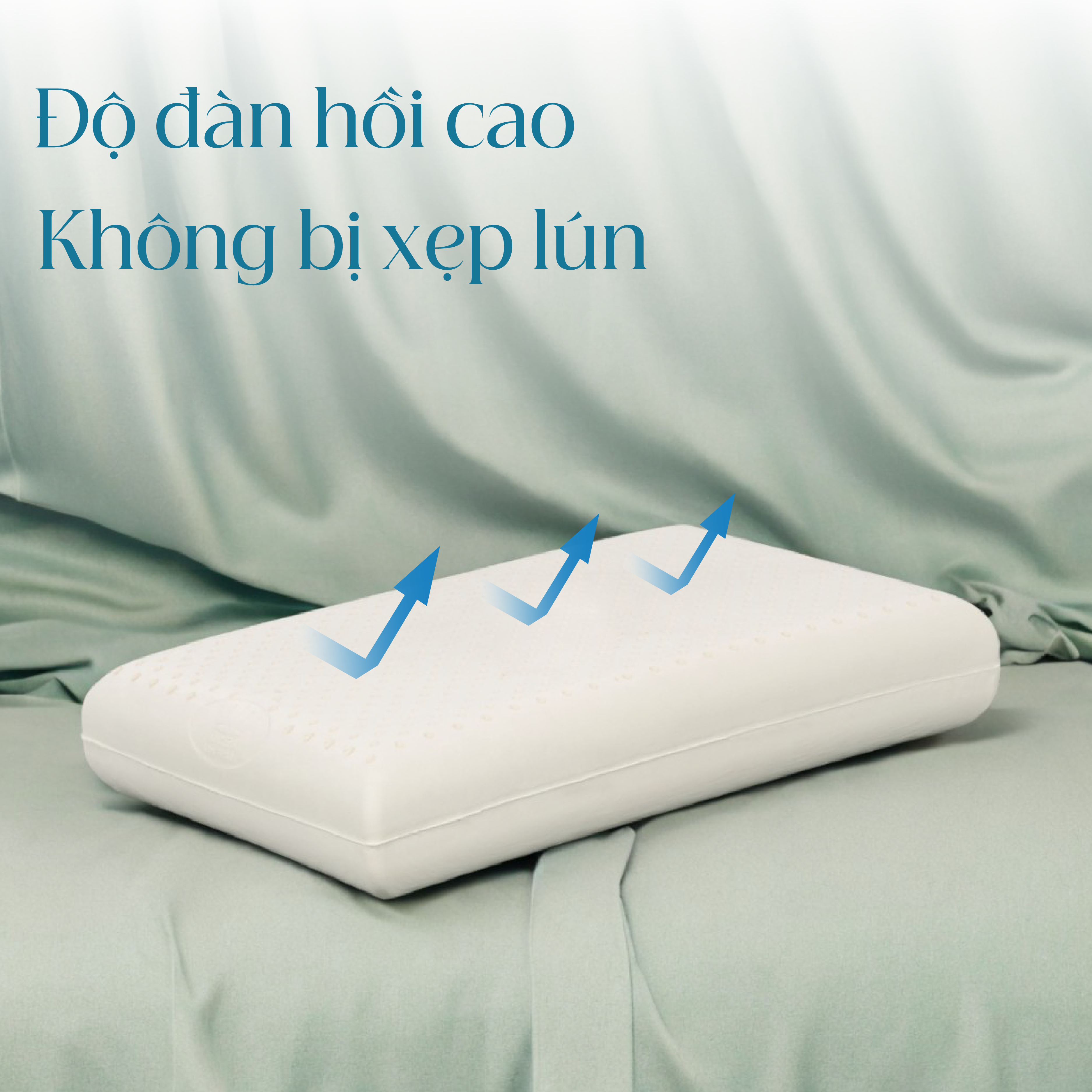 Gối cao su Liên Á Oval- được sản xuất từ 100% cao su thiên nhiên Kiểu dáng truyền thống, thoáng mát với cấu trúc hàng triệu lỗ thông hơi trên bề mặt gối Mềm