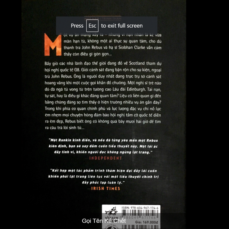 Một vụ án mạng xảy ra - nhưng vì nạn nhân là kẻ vừa mãn hạn tù, không một ai thực sự quan tâm, cho dù thanh tra John Rebus và hạ sĩ Siobhan Clarke vẫn cảm thấy còn điều gì gờn gợn...