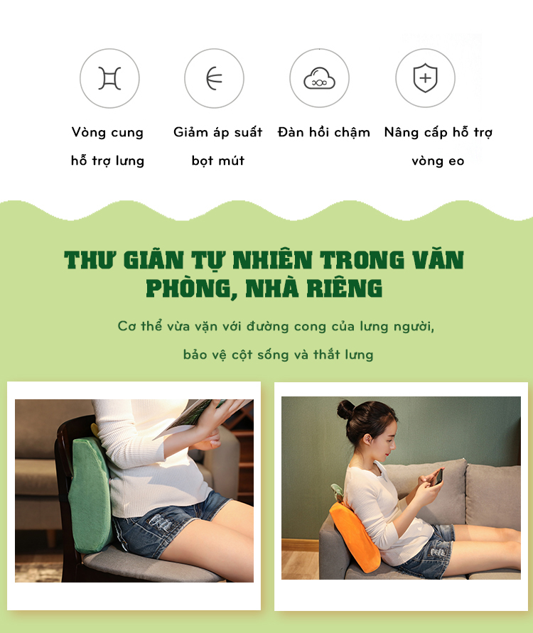 CÔNG DỤNG CỦA GỐI KÊ LƯNG EMA Giảm đau mỏi lưng dưới (vùng thắt lưng và eo) đặc biệt với đối tượng bà bầu, người cao tuổi, người thường xuyên phải mang vác hoặc cúi