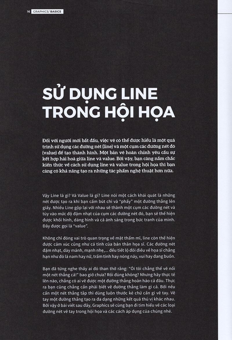 Số thứ hai của Graphics xoay quanh thành phần thiết kế cơ bản thứ hai: Line (đường). Những bài viết chuyên đề sẽ cung cấp cho bạn những khái niệm về Đường và chúng được sử dụng trong những bản thiết kế ra sao. Bên cạnh đó, chuyên mục Graphic - Illustration sẽ phân tích những xu hướng thiết kế nổi bật trong những năm vừa qua như Gradient và Line Art. Chuyên mục Branding - Packaging là tập hợp một số case study về các thương hiệu ứng dụng Line vào nhận diện và bao bì trên thực tế. Ngoài ra, nếu bạn quan tâm tới nhiếp ảnh hoặc muốn tìm kiếm những ý tưởng mới, chuyên mục Art & Inspiration sẽ giới thiệu loạt bài viết và trưng bày những tác phẩm nghệ thuật truyền cảm hứng dành cho bạn.