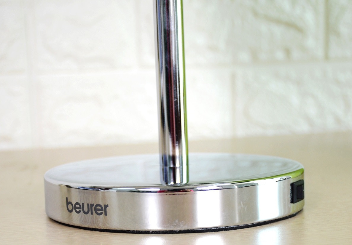 - Mặt gương trang điểm phóng đại: 2 mặt Beurer BS69 thiết kế một mặt phóng lớn gấp 5 lần, bạn có thể nhìn rõ từng nét trên khuôn mặt, từ đó việc trang điểm, tẩy trang hay tỉa lông mày nhanh hơn rất nhiều. Ngay cả những người mới biết làm đẹp, độ phóng đại của gương cũng giúp chị em dễ dàng trang điểm những điểm khó, cần sự khéo léo như kẻ mí mắt, kẻ viền môi, tán phấn… Mặt gương thường: Mặt còn lại của chiếc gương giúp bạn nhìn lại tổng thể “tác phẩm” sau khi trang điểm của mình. Đặc điểm cơ bản của đèn Led Beurer BS69