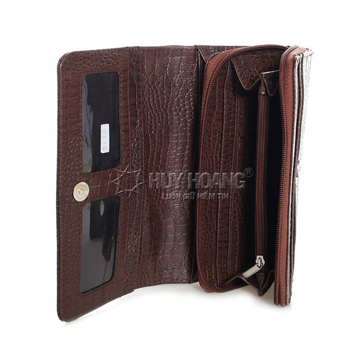 Ví nữ/Bóp nữ da bò vân cá sấu Huy Hoàng nhiều ngăn màu da, đen, nâu 3132-33-34