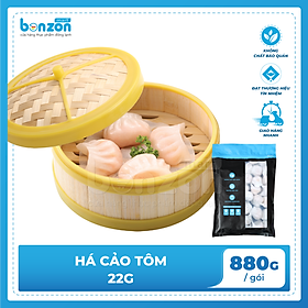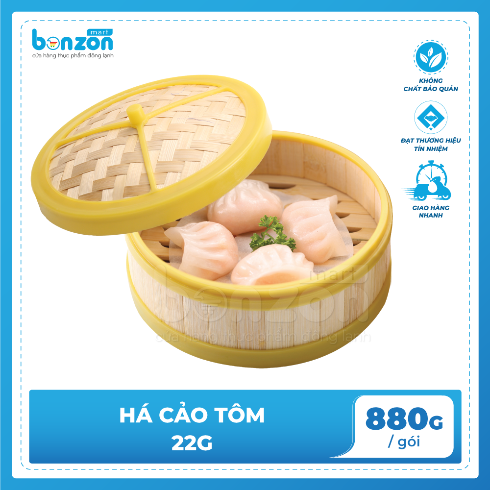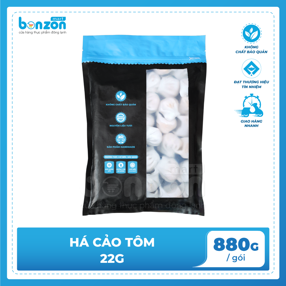 Với sản phẩm tươi sống, trọng lượng thực tế có thể chênh lệch khoảng 10%. ĐỊNH LƯỢNG: 22g/cái x 40 cái/gói (1 gói 880gr ) THÀNH PHẦN: Vỏ bột há cảo, tôm, mực, cá hồi,