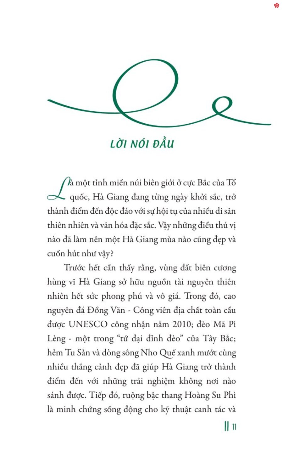 Mua tại TiktokCuốn sách Hà Giang - Miền đá nở hoa thể hiện tâm huyết của nhóm tác giả trên hành trình khám phá mảnh đất này để lý giải một cách dung dị những câu hỏi như: tại sao giữa mênh mông đá xám, Hà Giang lại bung tỏa bức tranh đa sắc về lịch sử, văn hóa, ẩm thực độc đáo như vậy; tại sao ở nơi lạnh giá mà tình người luôn ấm nồng và tràn đầy đến thế… Với những nghiên cứu, đặc tả sâu sắc, những ký sự, trải nghiệm chân thực và những bức ảnh minh họa sinh động, nhóm tác giả đã lần lượt tìm ra câu trả lời qua từng bài viết trong cuốn sách.