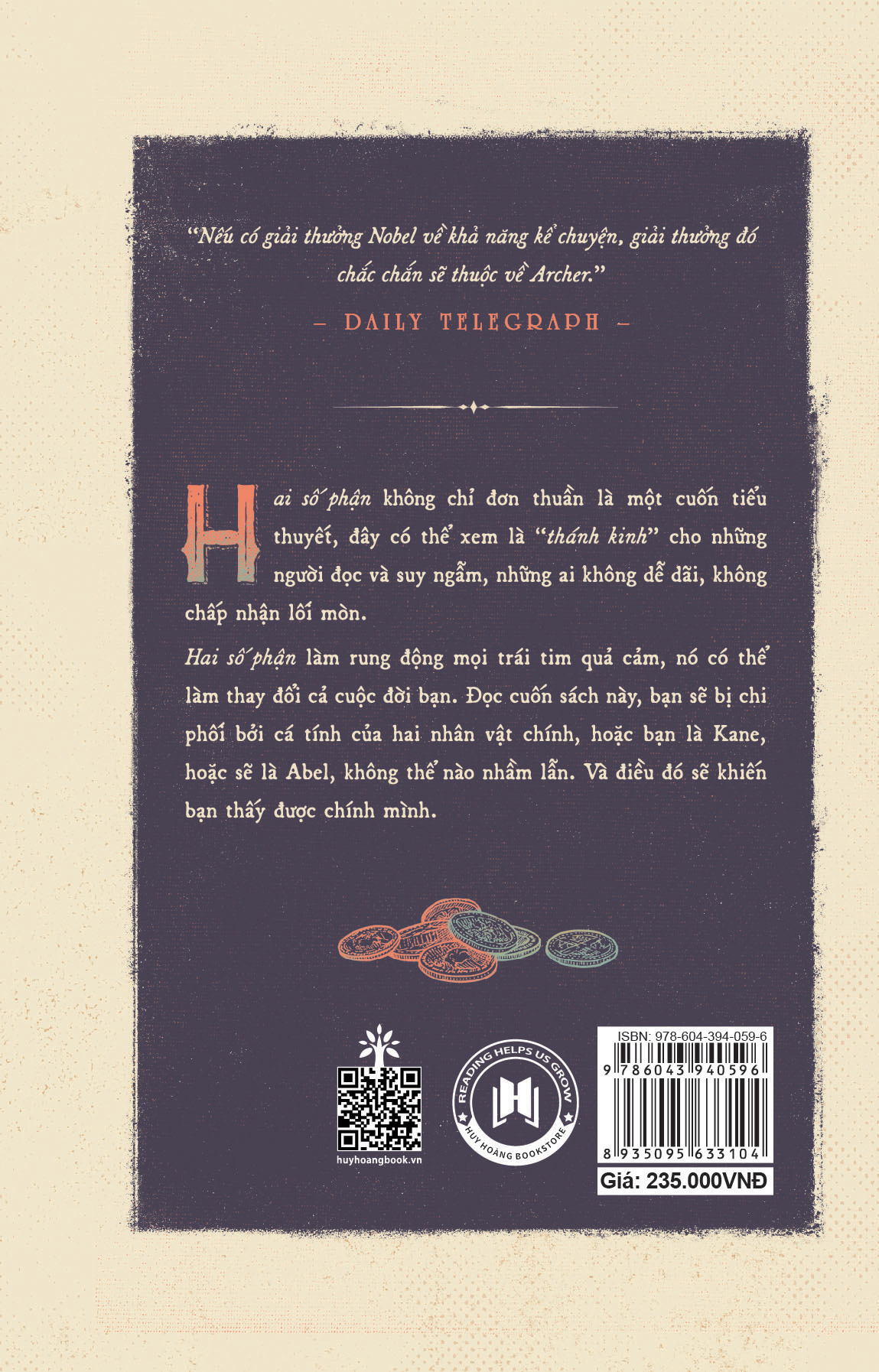 HAI SỐ PHẬN (tên gốc tiếng Anh là Kane and Abel) là cuốn tiểu thuyết được ông viết dựa theo câu chuyện của anh em Cain và Abel trong Kinh Thánh Cựu Ước. Truyện kể về hai người đàn ông với xuất thân địa vị xã hội và hoàn cảnh sống hoàn toàn khác nhau nhưng có chung một đức tính là luôn chiến đấu hết mình để chinh phục những điều mà mình đã đặt ra. Họ là những người có hoài bão, lý tưởng sống và trên hết họ có một tâm hồn cao quý.