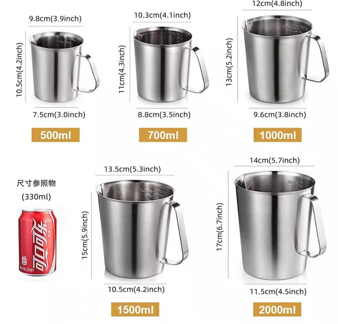 Ca Inox Định Lượng 304, Ca Đong Inox Có Vạch Chia Dung Tích 500ml/700ml/1L/1.5L/2L
