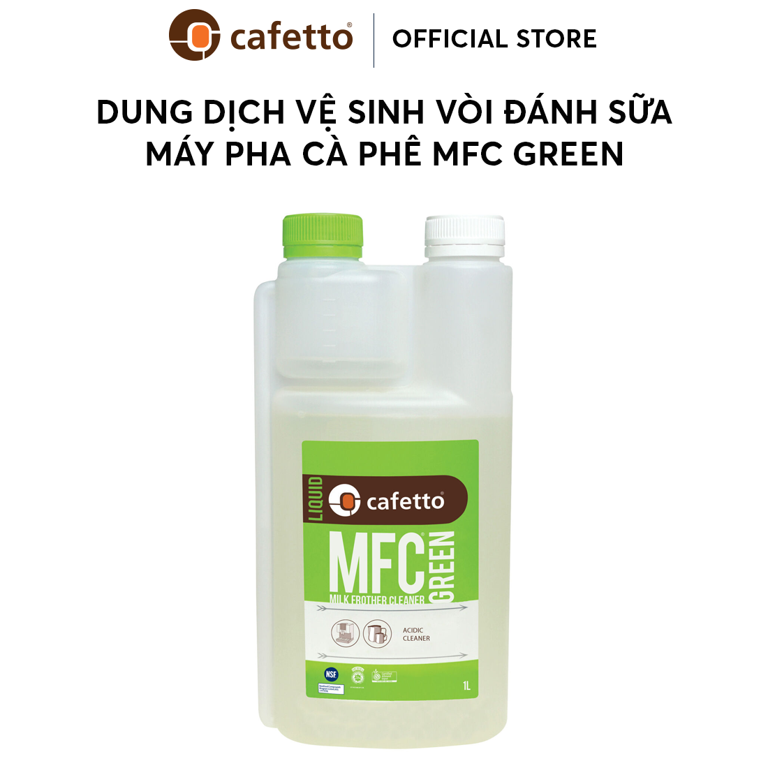 Dung dịch vệ sinh máy pha cà phê Cafetto MFC Green (1 lít) - Dung dịch tẩy rửa, vệ sinh hữu cơ có tính axit. - MFC Green chứa chất tẩy rửa có khả năng