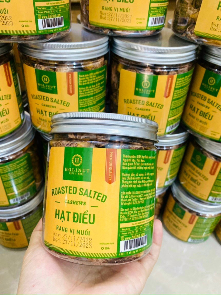Thông tin hạt điều rang muối Bình Phước. - Thương hiệu: H Holinut Nuts & More - Phân phối bởi công ty TNHH HOÀNG LINH SÀI GÒN - Xuất xứ: Bình Phước (Việt Nam)
