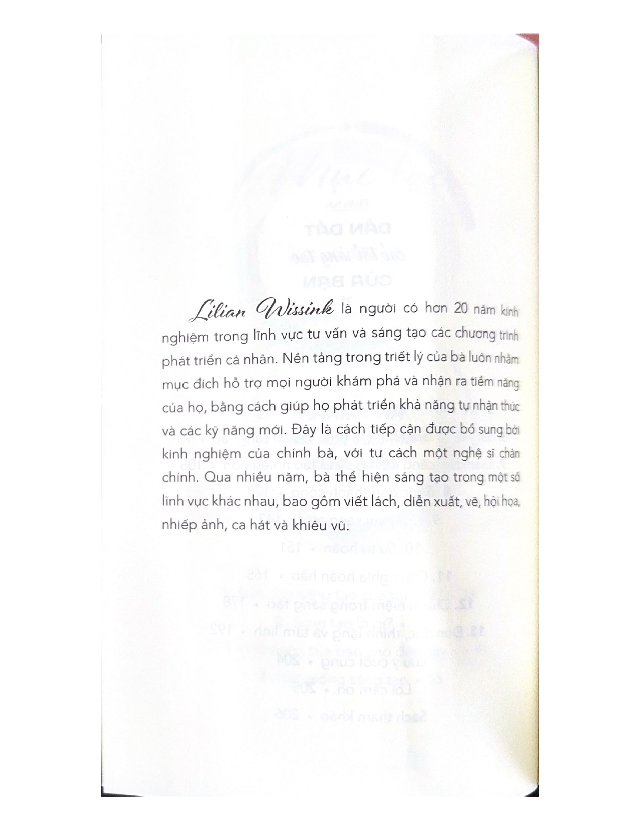 - Thông tin chi tiết Mã hàng 8935074133694 Tên Nhà Cung Cấp Cty Văn Hóa Văn Lang Tác giả Lilian Wissink Người Dịch Nguyễn Hiền NXB Hồng Đức Năm XB 2024 Trọng lượng (gr) 220 Kích Thước Bao Bì 21 x 13.5 x 1 cm Số trang 208 Hình thức Bìa Mềm