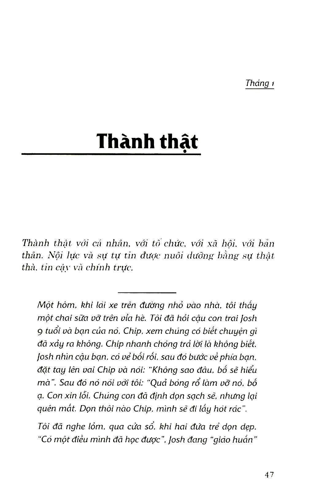 Cuốn sách nỗ lực giúp các bậc cha mẹ xác định hệ thống giá trị của mình và lựa chọn những “hạt giống tốt lành” nhất để gieo lên “mảnh đất” mới bồi trong lòng con cái. Hệ thống giá trị của bạn có thể rất giống - hoặc cũng có thể rất khác - với hệ thống giá trị trong cuốn sách, vì vốn dĩ trên đời này chẳng hề tồn tại hai hạt giống giống nhau hoàn toàn. Nhưng điều đó không thành vấn đề, bởi điều quan trọng nhất là bạn phải không ngừng phát triển nhóm giá trị riêng của gia đình mình và dạy lại những giá trị này cho con cái. Gia đình sẽ không bao giờ có thể bị thay thế bởi một thể chế, nơi mà những giá trị cơ bản được dạy và được học, giống như việc một hạt giống cây lê, lớn lên dù nó có nhiều – ít hay thậm chí chẳng có quả lê nào thì nó vẫn mãi mãi là cây lê, không khác được.