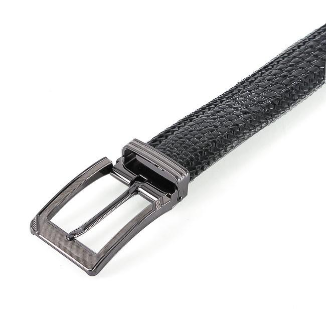 ✨HC4276 - Dây nịt nam Huy Hoàng da cá sấu đan viền 3,5P đầu kim màu đen