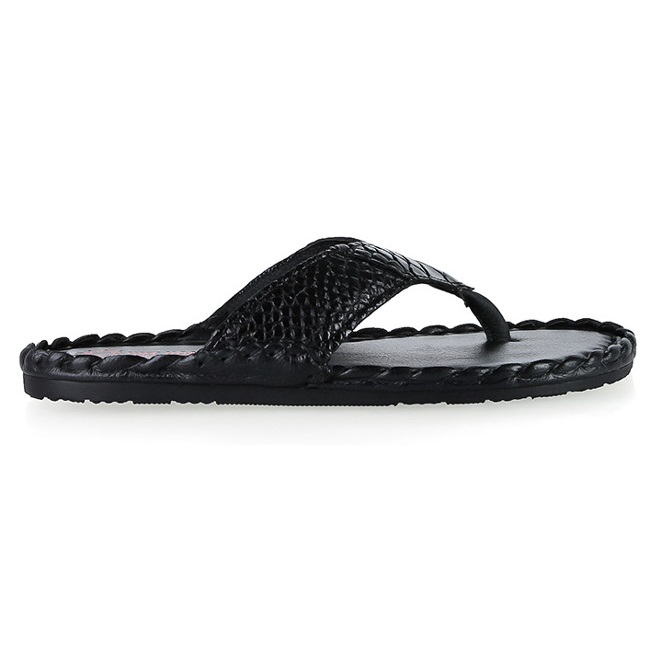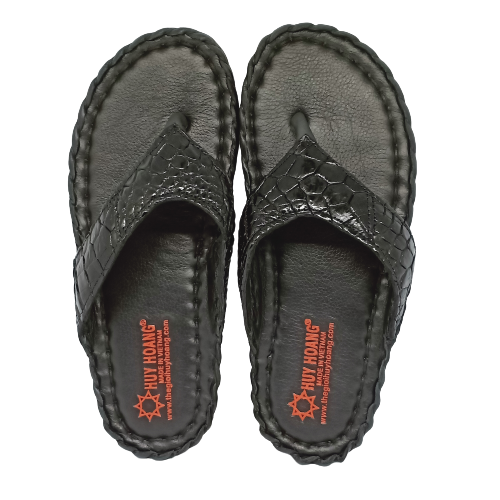 Dép HM thủ công màu đen vân cá sấu