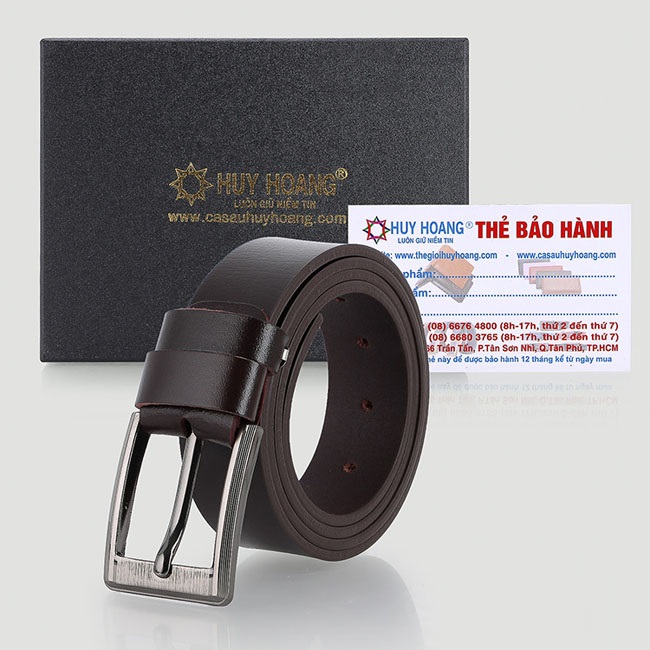 Dây nịt/Thắt lưng nam da bò Huy Hoàng 3,5P bát gài màu nâu 4148