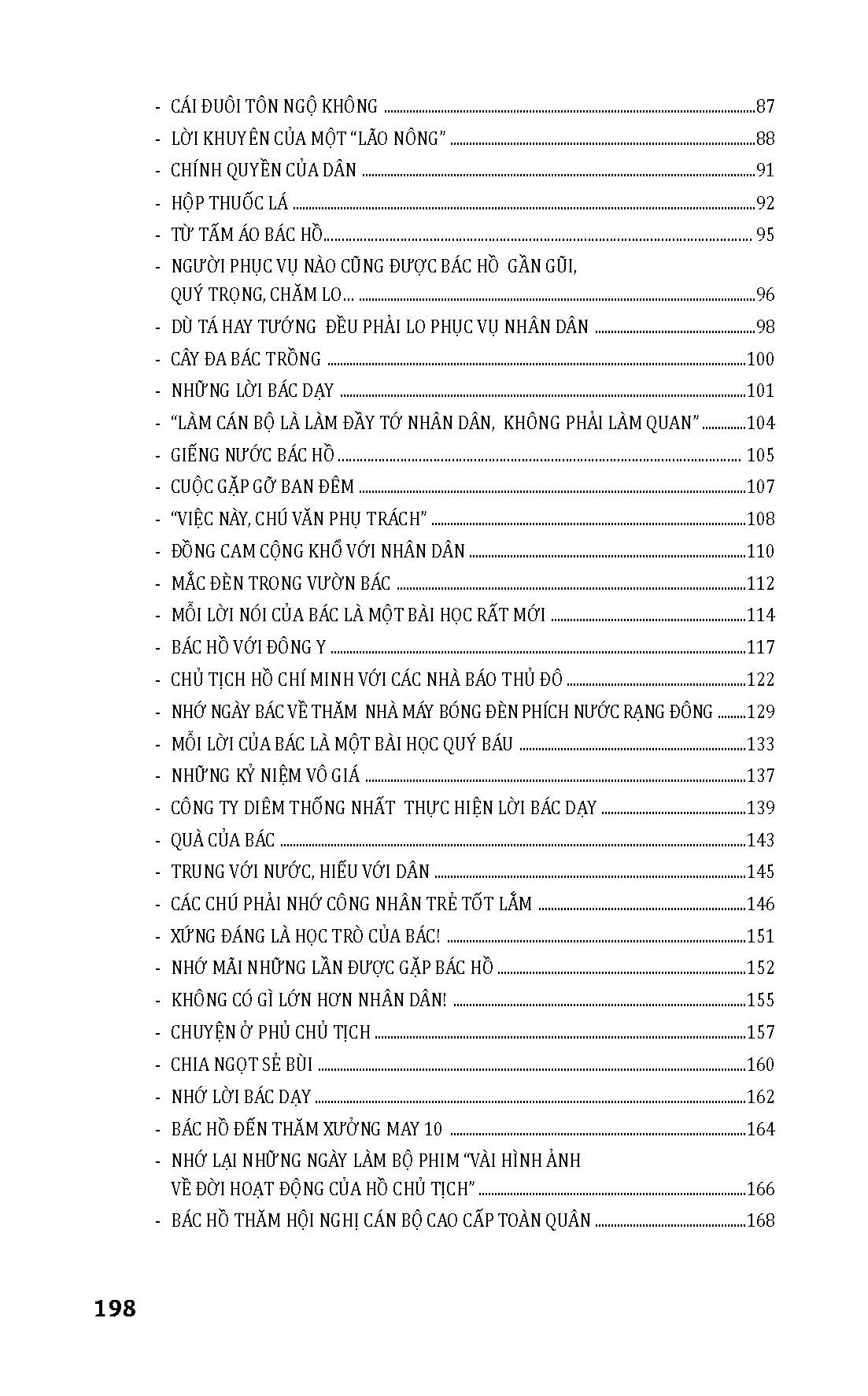 Sách nói về vị lãnh tụ kính yêu của dân tộc dưới góc nhìn gần gũi, thân thương. Mặc dù bám theo trình tự biên niên, sách vẫn cố gắng tổ chức theo các lĩnh