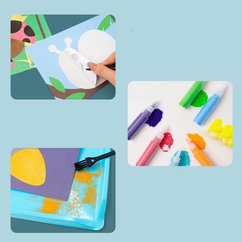 ✨Hộp 16 Tranh Cát DIY 21x14cm An Toàn Cho Bé Kèm 12 Lọ Màu Cát