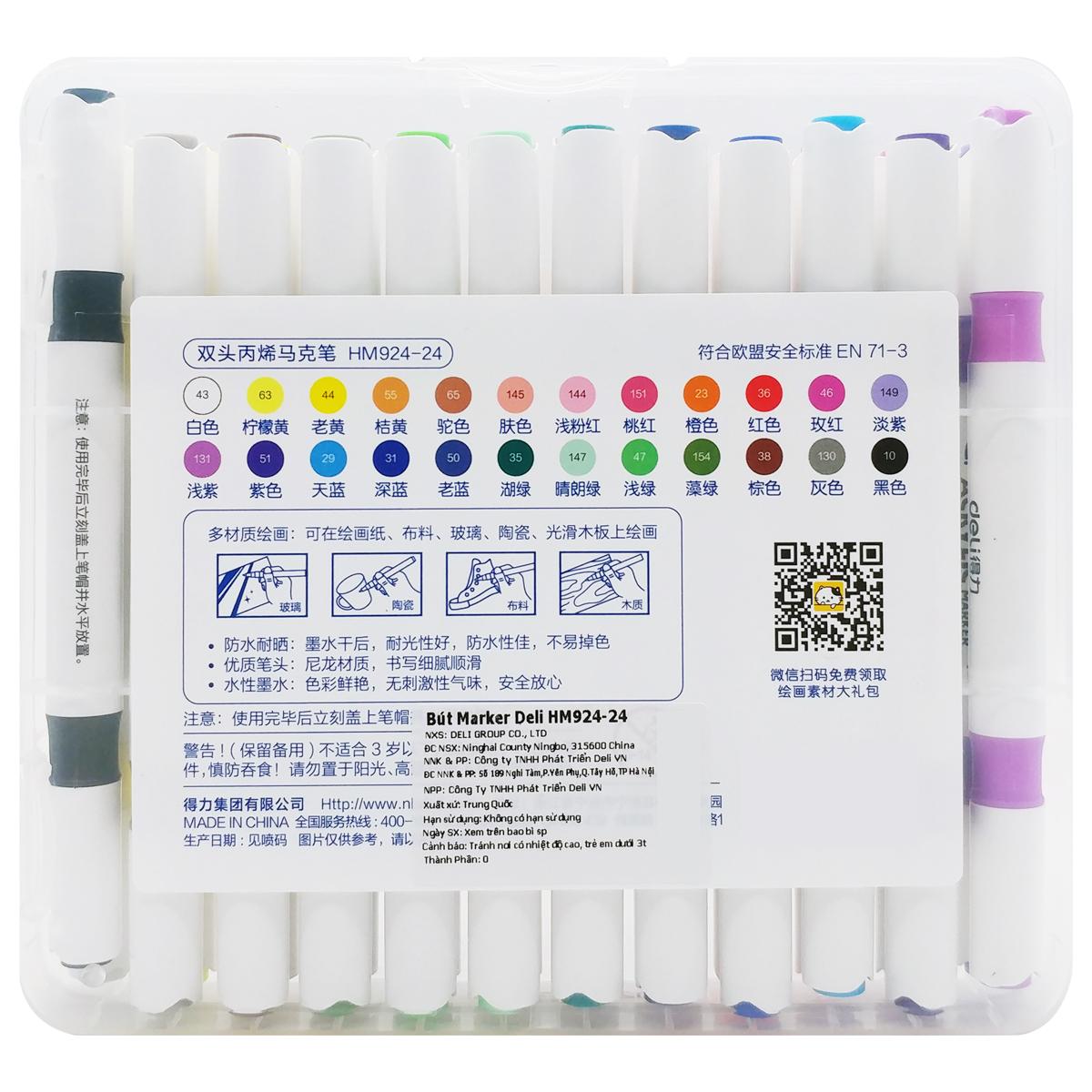 Hộp 24 Bút Màu Acrylic 2 Đầu - Deli HM924-24 - Phù hợp cho cả người chuyên nghiệp lẫn mới bắt đầu - Thỏa mãn mọi nhu cầu của người sử dụng, cả đi học,