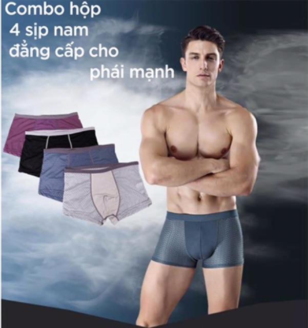 Hộp 4 Quần Lót Boxer, Sip Đùi Thông Hơi Cao Cấp Kháng Khuẩn Ngăn Mùi Dành Cho Nam QN01 *Quần Lót Boxer, Sip Đùi Thông Hơi Cao Cấp QN01 rất được khách hàng ưa chuộng