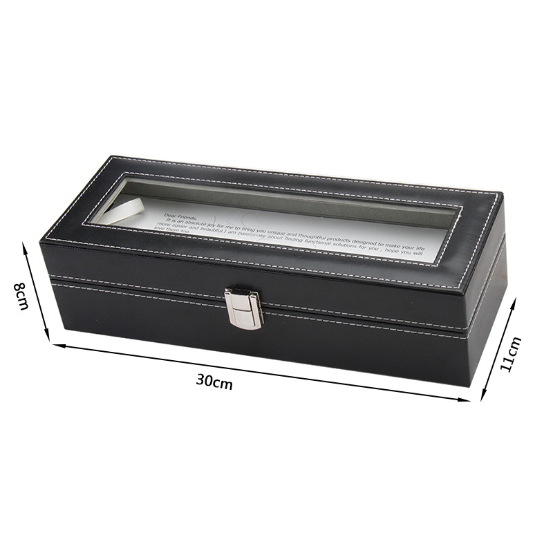 Hộp Đồng Hồ 6 Ngăn SAIKE SAIKE S6007 Vỏ Da Màu Đen Lót Xám