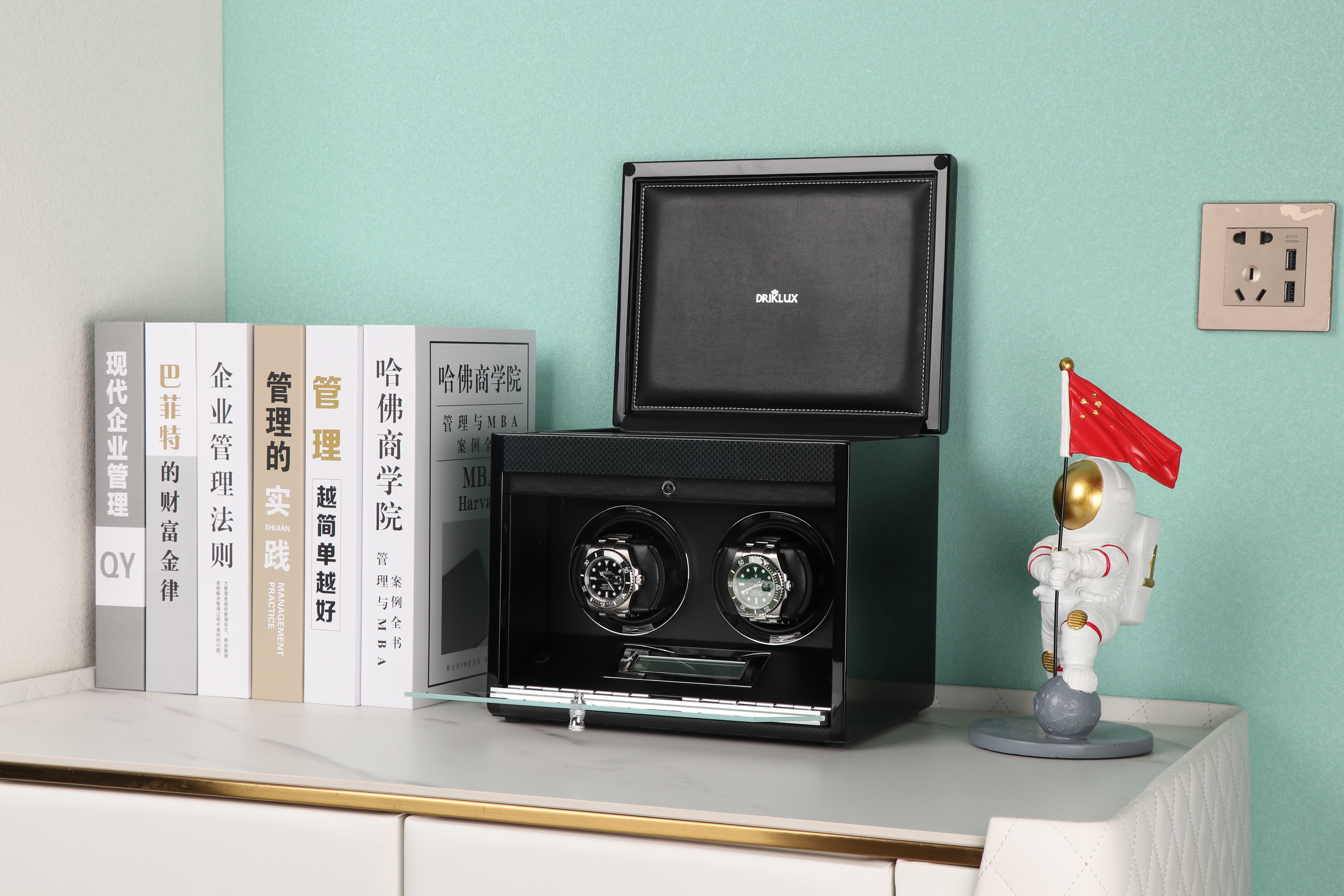 Mua tại Tiktok• Mã sản phẩm: T2 • Số lượng đồng hồ 02 xoay + khay trên để đồng hồ pin và phụ kiện • Kích thước: Ngang 23.5 x Cao 19 x Sâu 21 cm. • Trọng lượng: Thiết bị: 4.0 kg / Đóng gói: 5.0 kg. • Màu sắc: ĐEN / VÂN GỖ ĐỎ • Chất liệu: Gỗ MDF mật độ cao chống ẩm mốc • Động cơ: Chính hãng DRIKLUX • Nút nguồn phụ hỗ trợ dừng xoay khi mở nắp. • Bảng LED điều khiển cảm ứng • Đèn Led chiếu sáng ổ xoay. • Có thể thiết lập riêng biệt cho từng ổ xoay. • Thương hiệu của ĐỨC – Nhà máy sản xuất tại Trung Quốc