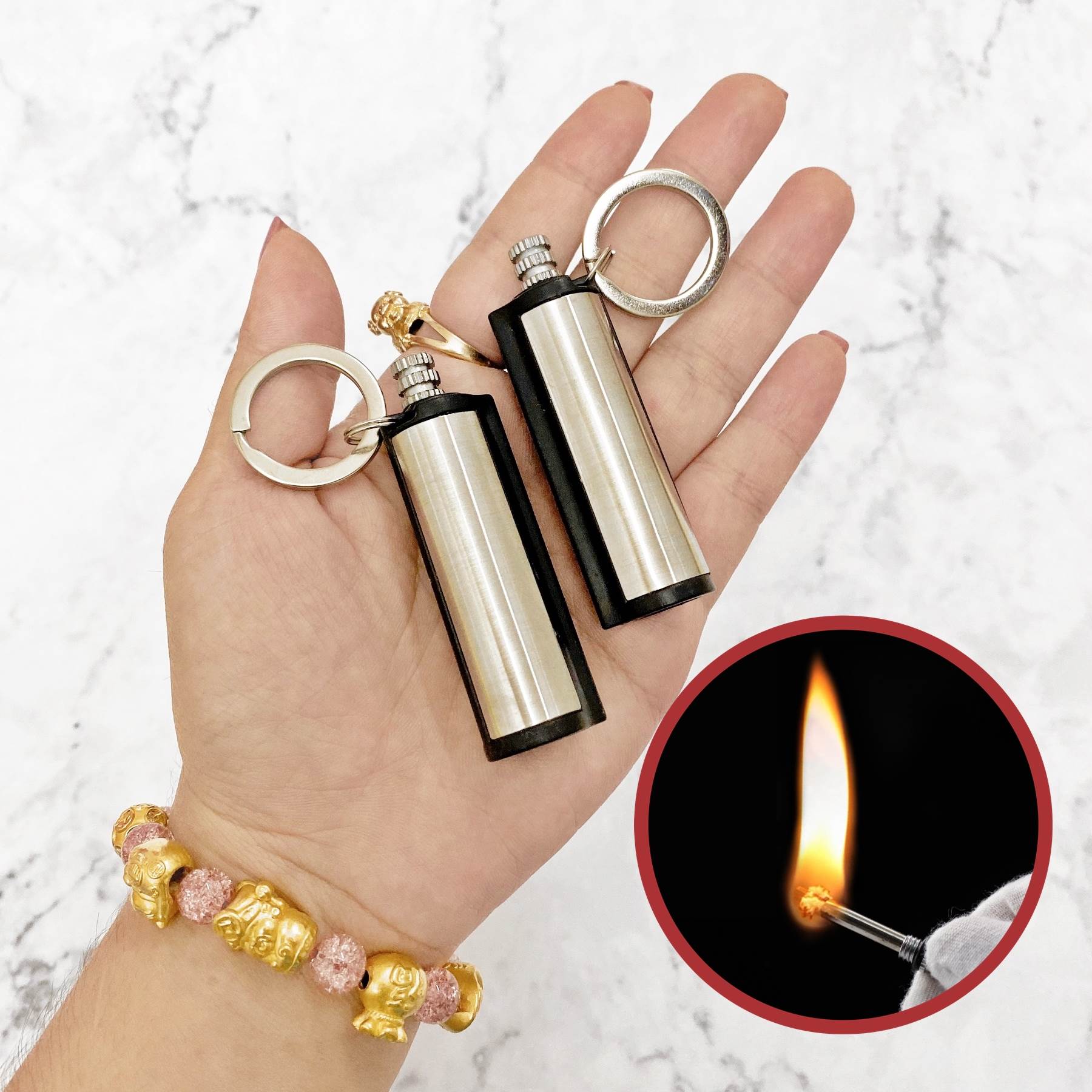 ✨Hột quẹt bật lửa móc khóa diêm xăng sinh tồn hình Trụ Tròn - xài xăng