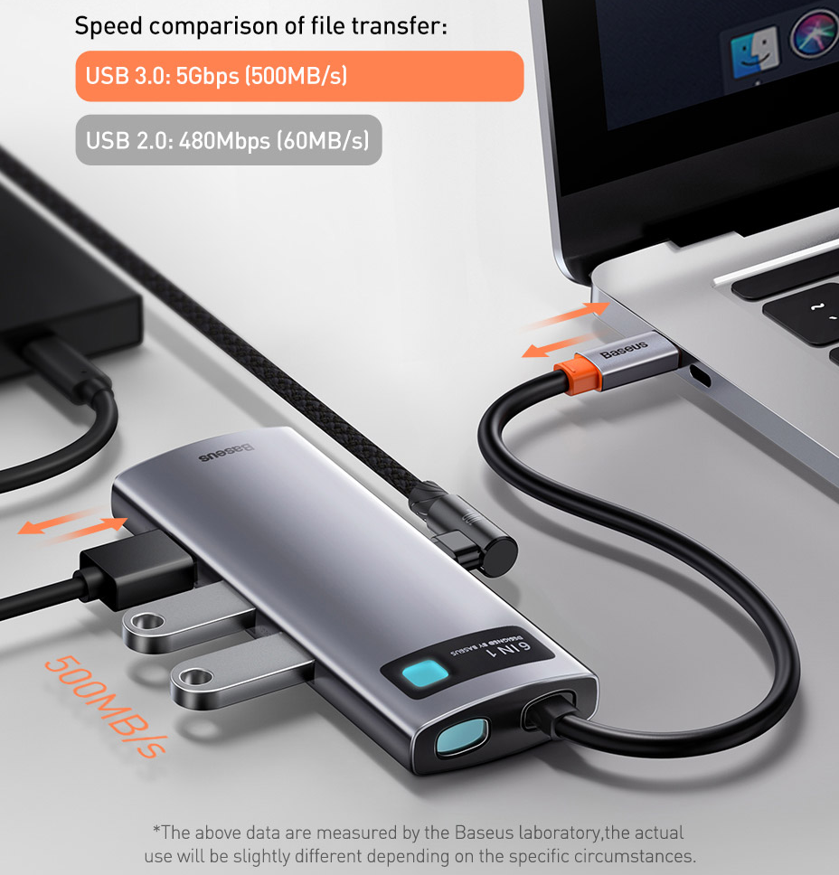 Hub chia cổng Type-C 6 in 1 hỗ trợ sạc nhanh 100W cho Macbook / Laptop / Smartphone hiệu Baseus Metal Gleam Series Với cổng kết nối USB ngoài việt kết nối thiết bị ngoại vi và truyền dữ liệu nó còn hỗ trợ sạc ra cho các thiết bị khác nếu bạn cấm dây sạc vào, dòng lên đến 1.5A.