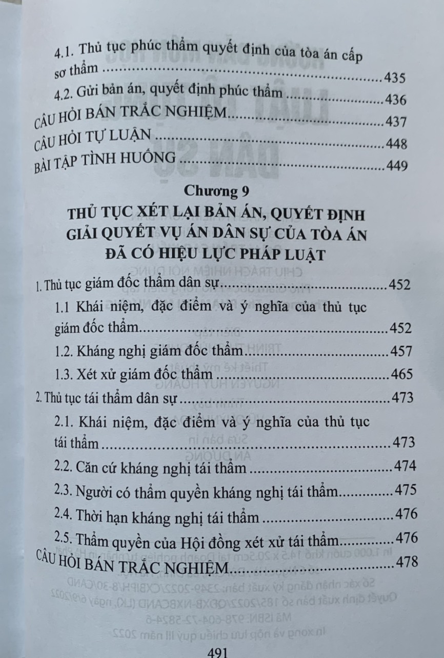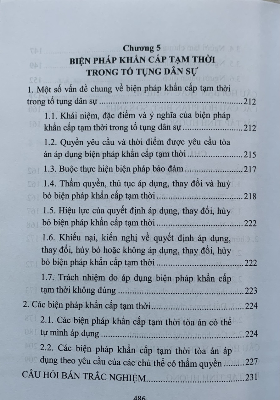Cuốn sách được chia thành 9 chương, trong đó mỗi chương trình bày cô đọng những nội dung cơ bản về những vấn đề chung của luật tố tụng dân sự Việt Nam và thủ tục giải quyết các vụ án dân sự. Mỗi mục ngoài phần trình bày những kiến thức,lý luận cơ bản, quy định của pháp luật cơ bản, quy định của pháp luật hiện hành còn có các tình huống, ví dụ minh họa. Đặc biệt cuối mỗi chương đều có các câu hỏi lý thuyết , câu hỏi trắc nghiệm, bài tập tình huống và gợi ý giải quyết tình huống .