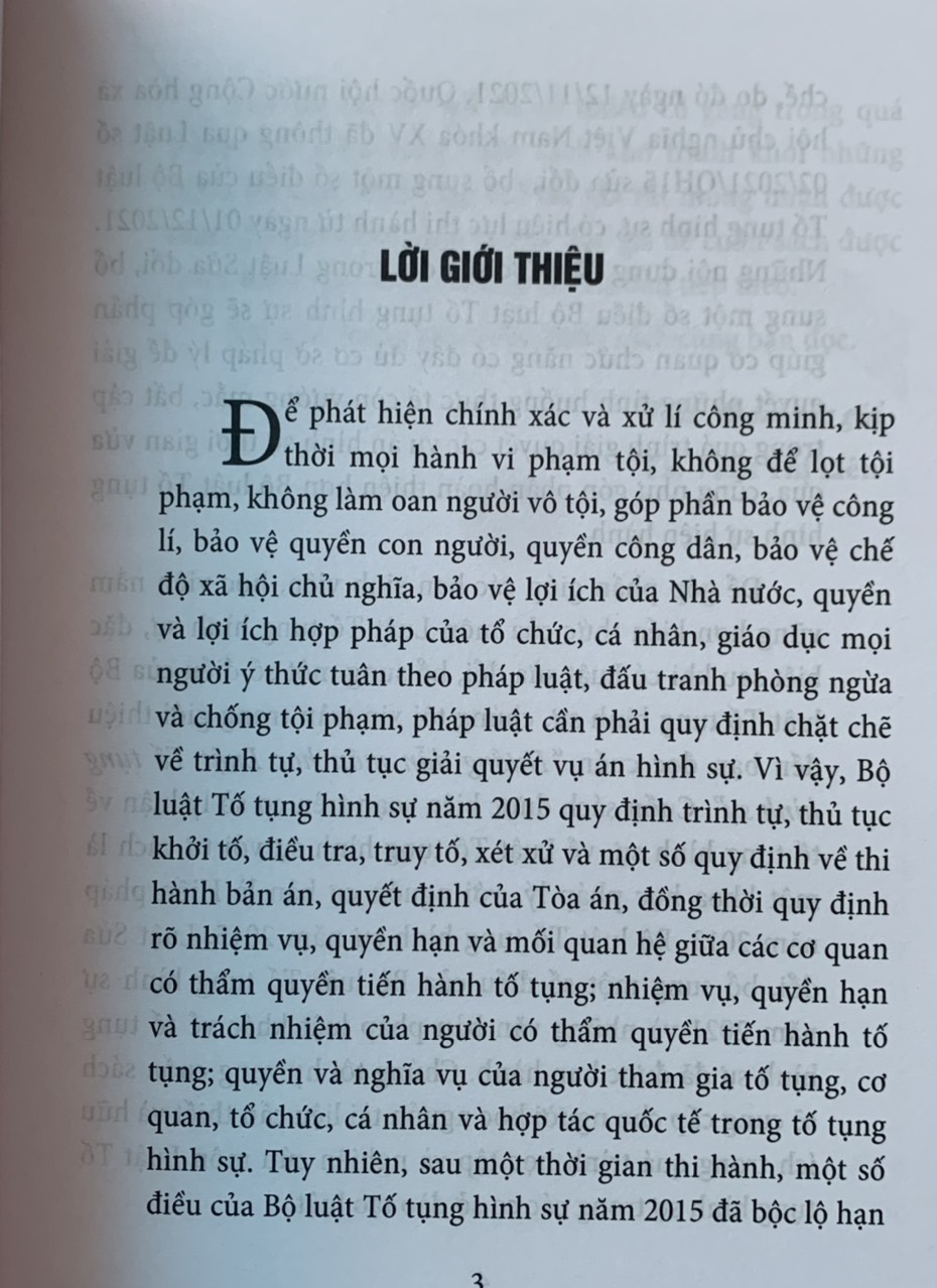 Phiên bản Bộ luật tố tụng hình sự năm 2015 (đính kèm 4 trang nội dung chỉnh sửa năm 2021), nên bạn đọc cân nhắc khi mua tham khảo     Bộ luật tố tụng