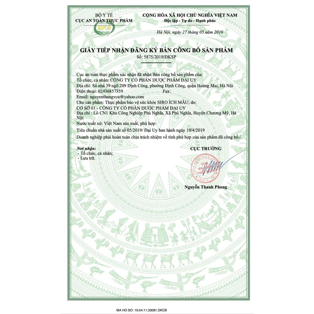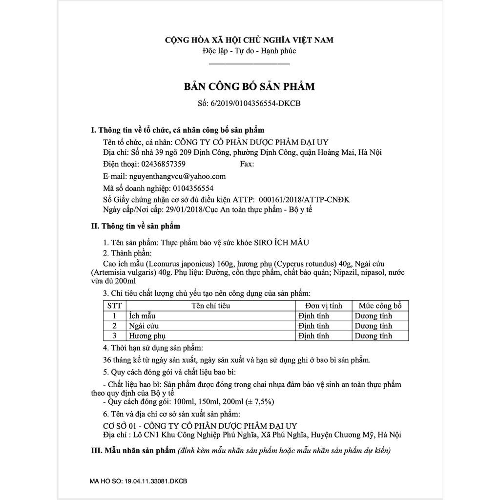 1. THÀNH PHẦN CẤU TẠO: Cao khô ích mẫu. 150mg Cao khô Hương phụ 120mg Cao khô Ngài cứu .100mg Sát IlI Polymaltose 30mg Cao khô Trinh nữ hoàng cung ... 30mg| Thành phẩn khóc: