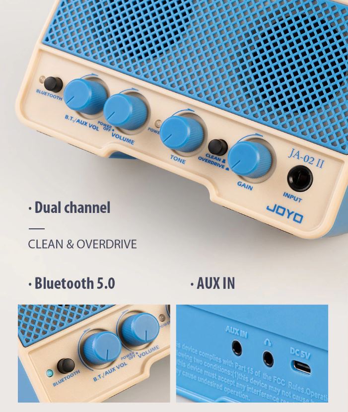 ✨JOYO JA-02 II 5W - Loa Amplifier Mini Guitar Điện Dual Channel Clean & Overdrive Pin Sạc TypeC, Bluetooth 5.0 AUX IN - Hàng chính hãng