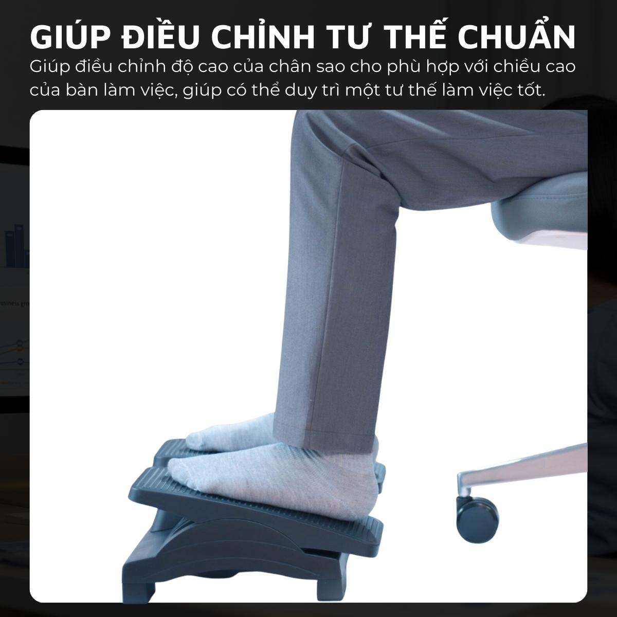 Mô tả sản phẩm: Ghế gác chân công thái học là giải pháp lý tưởng giúp cải thiện tư thế ngồi và giảm áp lực lên chân khi làm việc lâu tại bàn. Thiết kế
