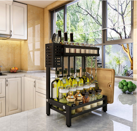 Mẫu kệ bán chạy nhất 2020 với tính đa năng, giúp căn bếp của bạn trở nên gọn gàng, sang trọng và tạo không gian thoải mái khơi nguồn cảm hứng cho những bữa ăn tuyệt vời.   Kệ được thiết kế với kiểu dáng tinh tế, đẹp mắt, có thể chịu lực tốt, nhỏ gọn, dễ dàng lắp đặt cũng như di chuyển. Các tầng của kệ đều được hàn thêm khung bao bọc cao 5cm giúp các chai lọ được để gọn gàng, tránh rơi đổ ra khỏi kệ. Ngoài ra các tầng đều được tạo ra các ô thoáng , tránh việc lưu đọng nước hay ẩm mốc, ngăn ngừa vi khuẩn phát triển, tạo không gian bếp sạch sẽ.       Kệ được sản xuất trên dây chuyền tiên tiến, khung kệ được làm từ sắt hộp cao cấp có độ chắc khỏe cao, bên ngoài được sơn phủ lớp sơn tĩnh điện đen giúp chống thấm nước, chống oxi hóa, gia tăng độ bền cho kệ tránh khỏi bị han rỉ cũng như tăng thêm tính thẩm mỹ cho sản phẩm.     Đặc biệt, kệ được gắn thêm miếng hút dưới chân giúp kệ có độ bám với bề mặt, chống trơn trượt, gia tăng thêm độ an toàn.     Thông tin chi tiết về kích thước của kệ   Thiết kế tinh tế, sang trọng, giúp bạn có không gian sắp xếp các chai lọ gia vị, một số vật dụng khác gọn gàng vào 1 chỗ