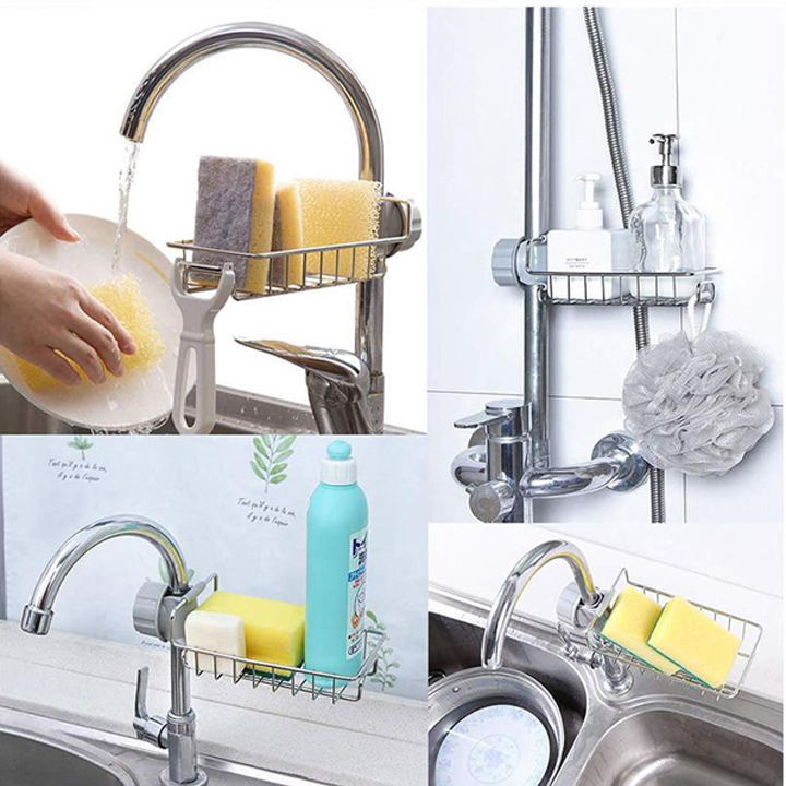 - Với Giá Treo Vòi Đựng Đồ, Giẻ Rửa Chén Bát thiết kế mới với nhiều lỗ thoáng giúp thoát toàn bộ nước xuống bồn rửa bát cho lưới rửa bát luôn khô thoáng, không gian thêm gọn gàng, ngăn nắp