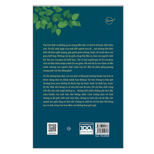 Kẻ thuận tay trái: Bất đối xứng- Đồng dạng- Tự tổ chức   Công ty phát hành: Thái Hà Tác giả: Kelly Phương NXB: Hà Nội Số trang: 247 trang Khổ: 13 x 20.5 cm Năm xuất bản: 2022 [ThaiHaBooks] “Kẻ thuận tay trái: Bất đối xứng- Đồng dạng- Tự tổ chức” là tập sách thể hiện suy tư của một người trẻ về những vấn đề tưởng như hiển nhiên trong cuộc sống của con người như cái tuyệt đối, tình yêu, sự ngẫu nhiên. Những vấn đề đó dưới góc nhìn của một kẻ thuận tay trái mở ra những tư duy thú vị, thoát ra khỏi logic thông thường. Qua những bài viết ngắn gọn, sâu sắc, cuốn sách thể hiện sự suy ngẫm của tác giả Kelly Phương, một người trẻ, về cuộc sống. Tay trái thật ra không quan trọng đến thế, có thể lờ đi hoặc dấn thân vào. Và rồi, một ngày của một đời người qua đi… mà những thứ khó hiểu đã làm ngắt quãng gãy gánh giữa chừng, hoặc cất cánh như con giun biết bay. Những cái ẩn giấu cũng thò đầu ra, làm con người chối bỏ. Tại sao con giun lại biết bay… Tại vì mọi người gọi nó là con giun chứ nó đâu thừa nhận mình là con giun. Nó nói tôi là con chim có đôi cánh, nhưng con người chặt cánh của tôi. Rồi tôi phải gắng gượng mang một cái tên đáng ghét. Và rồi những bạn nhỏ, các em nhỏ có khuynh hướng thuận tay trái có được sống như là chính mình hay không? Theo tác giả, xã hội chúng ta bây giờ thoáng hơn xưa, không bị đánh hay ép buộc hoặc bị đuổi học, hoặc kỳ thị. Mặc dù chúng ta có sửa thế nào đi nữa, thì cái bản chất cũng trồi lên vào một ngày không xa… không thể chiến thắng nội tâm đầy mâu thuẫn của một bản thể thống nhất. Cảm tưởng vô tình chúng ta như giết chết một tâm hồn, chúng ta tách rời cái tôi đầy sức mạnh mà nghĩ rằng nó đen tối. Chúng ta chối bỏ cái tôi như thể đang tạo ra ánh sáng vào ban đêm mà không bao giờ ngủ. Cuốn sách không hướng người đọc đến cái gì cả. Chúng ta tồn tại đều hy vọng khi làm một cái gì đó, dành thời gian cho cái gì đó, thì cái đó phải nhận lại thứ tương đương. Giá trị vật chất, giá trị tinh thần những cái có thể sở hữu hoặc là học được thêm một điều gì đó mới. Kelly Phương tự cho rằng nhiệm vụ của mình khi viết cuốn sách này là truyền tải về một thế giới tinh thần, cái bị phớt lờ, có thể đó là mặt trái của con người. Cái TRÁI mà con người gọi là SAI thì là trung tâm của sự sống. Cái bất di bất dịch làm việc trong im lặng. Rất kiên định, không thay đổi. Cho dù chúng ta là ai trên hành tinh này, miễn là sự sống thì thứ duy nhất thống trị cái sống đó là cái TRÁI. Trái tim nằm bên trái, nhưng đa phần con người thuận tay phải. Mỗi sinh vật trong cái TRÁI đều mang một sứ mệnh!   Trích đoạn sách Một sự biết ơn sâu sắc đến Ba Má – sinh ra tôi là người thuận tay trái. Vâng, tất nhiên cả cuộc đời tôi sẽ chỉ sống trong thế giới của mình. Một con cá bơi ngược dòng, một con chim phản lại trọng lực của Trái đất, một kẻ khác biệt trong thế giới, một người khác thường mãi mãi cũng không thể suy nghĩ điều gì hoặc nhìn theo cách của số đông được. Vô hình, đơn độc trong hành trình cuộc đời mình. Đó cũng là lý do khiến tôi không khuất phục trước bất kỳ một quyền lực nào, tôn giáo nào, một chủ nghĩa nào, một sự phân biệt nào, một ranh giới nào. Có lẽ, tận sâu trong tâm hồn tôi đã nhận ra có rắc rối nào đó mà con người chúng ta chưa thấy hết và tất nhiên vẫn sống trong một thế giới mà ở đó mọi thứ cứ thế mơ hồ và quay cuồng. Một cuộc đời chỉ để trở nên đáng sống một cách trần tục, và lao động như một người sáng tạo. Nếu tự do không phải là lý do để tiếp tục thì sự cố gắng chỉ là đang cố gắng không phải là đang rong chơi. Thế thì sao không chọn rong chơi trong sự sống để có thể tự biến mình thành một dạng nào đó mà mình muốn, không cho phép sự ràng buộc đóng đinh. Một điều kỳ diệu của bông hoa được mọc lên từ một thân cây, hoặc những trái trên cành, được biến dạng vươn ra từ thân cây cằn cỗi, thì sao đó không phải là sự sống của Thượng đế! Hạnh phúc sản sinh ra khi người ta đi đến điểm vô cùng, vô cùng đầy đủ, vô cùng thấu hiểu, vô cùng yêu thương. Không cần phải chống cự gì cả, đón nhận những gì xảy ra xem đó là một việc cần thiết hiển nhiên của sự tồn tại. Đón nhận tác động của vũ trụ đến con người, thả cho tâm hồn sự ngẫu nhiên của tự nhiên. Đợi một chút – đến trễ một chút – sai một chút – ngớ ngẩn một chút. Chẳng sao, rồi mọi thứ cũng ổn. Điều đó là thước đo cho giá trị khi nhìn lại bản thân, và tự hào về những điều mình đã làm!   Công ty CP Sách Thái Hà trân trọng giới thiệu!