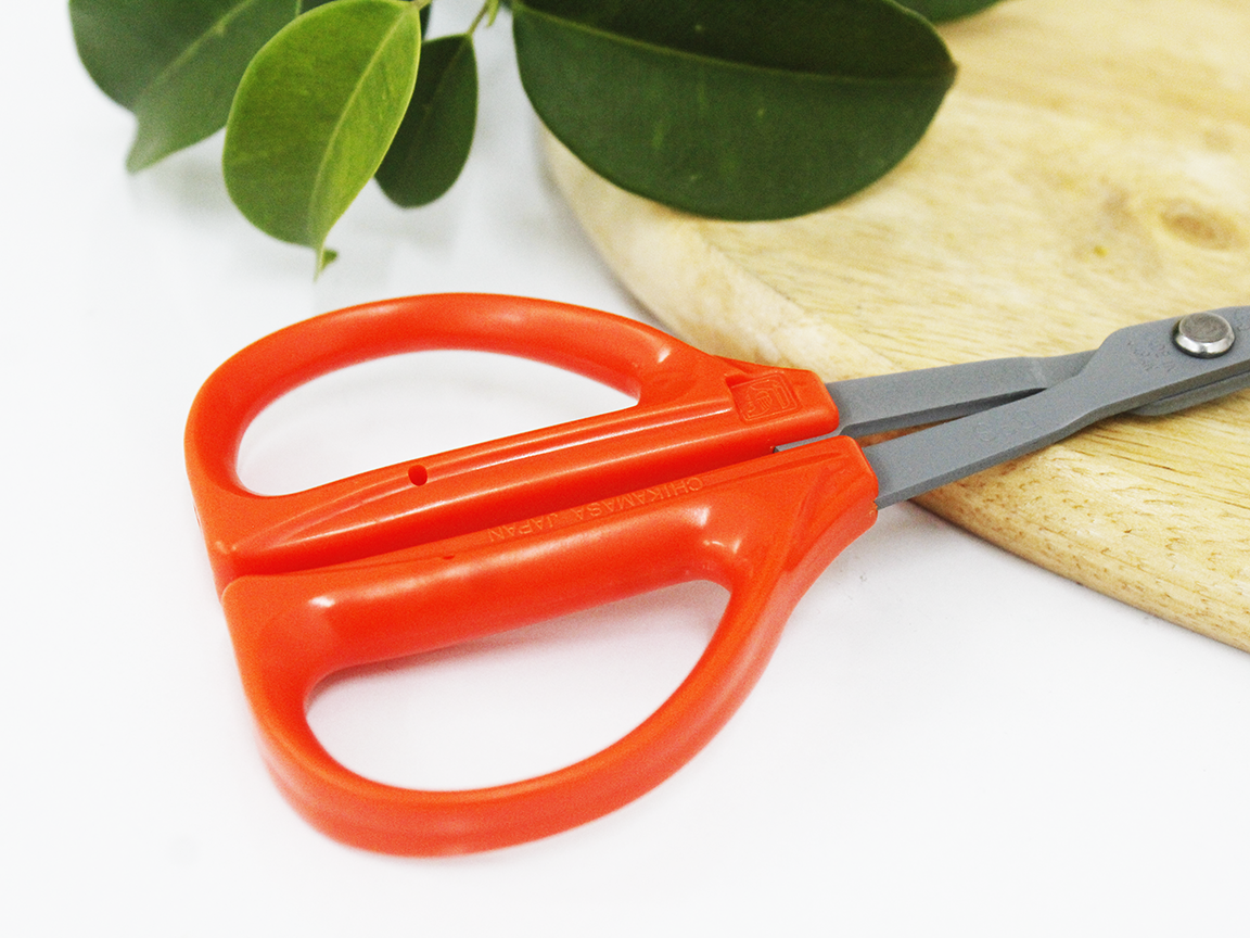 Kéo cắt hoa Chikamasa MF-8000P Tổng chiều dài: 170mm Chiều dài lưỡi: 47mm Trọng lượng: 120g Lưỡi:thép carbon phủ Flo Chất liệu tay cầm: nhựa đàn hồi Xuất xứ: Japan