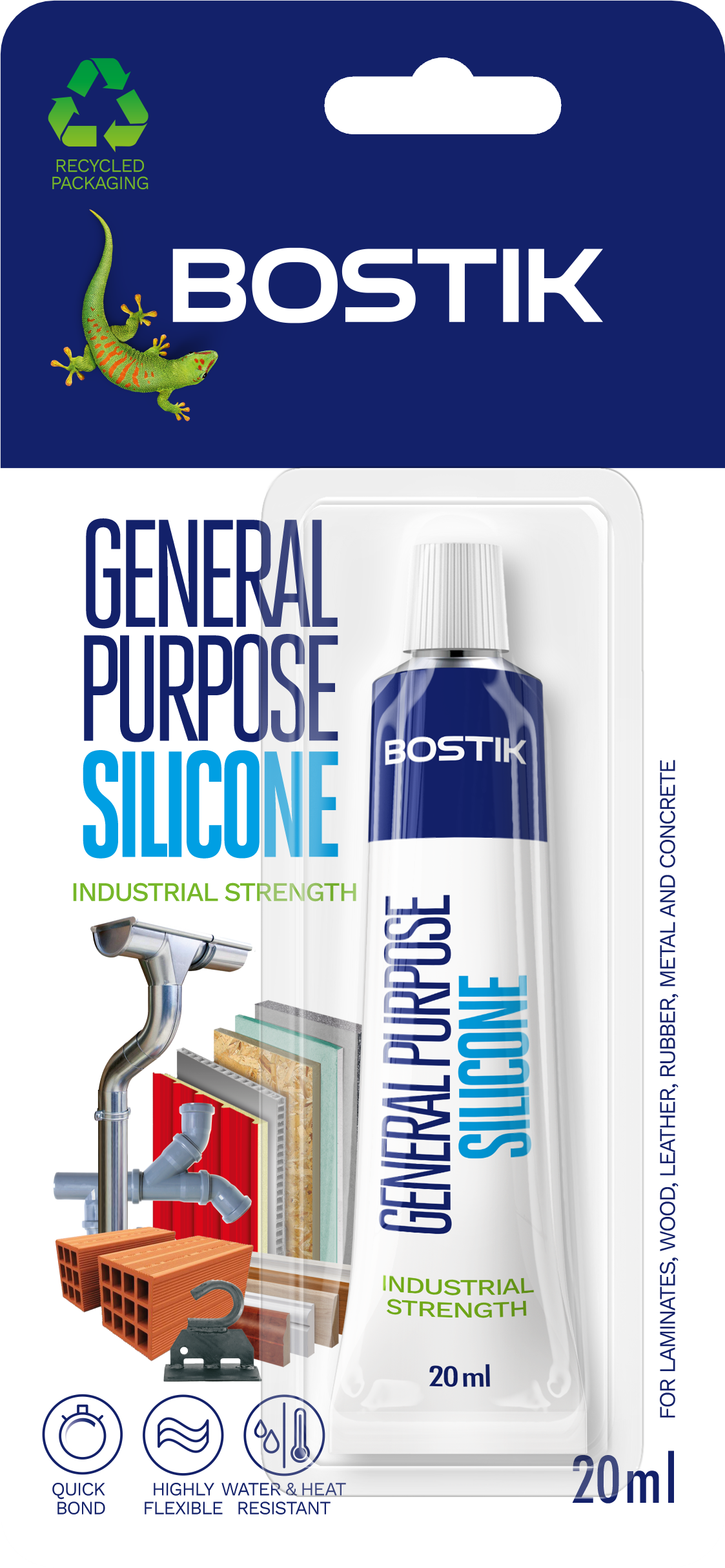- Keo Dán Silicone đa dụng 20ml - BOSTIK silicone trung tính với mô đun thấp, đóng rắn bằng cách phản ứng với độ ẩm để tạo thành một miếng đệm cao su đàn hồi bền.
