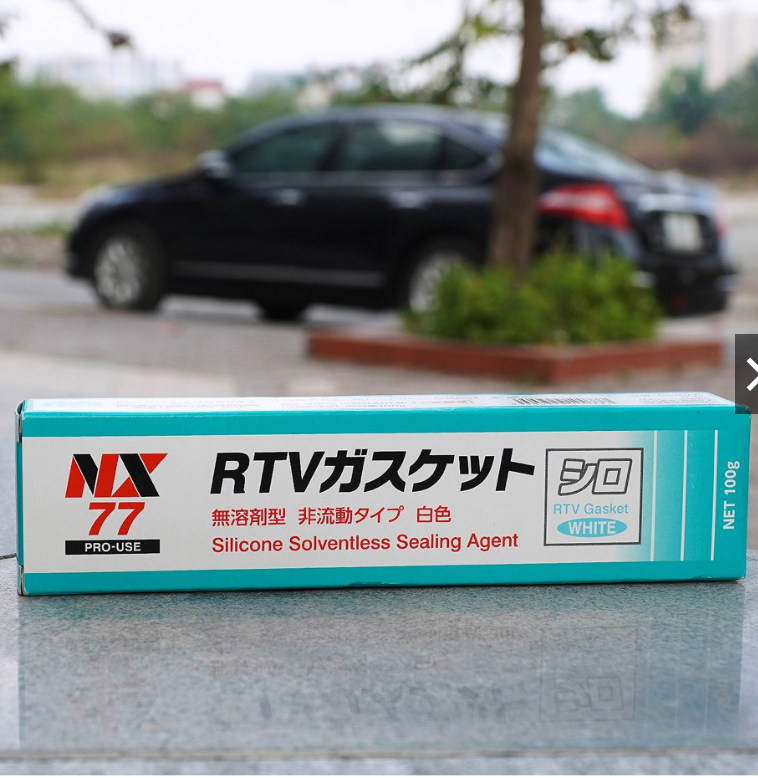 Vá nối mặt khay dầu Đặc tính: Chứa môi chất cao su RTV khử oxit Phản ứng với hơi nước trong không khí, đông lại thành lớp cao su dẻo ở nhiệt độ thường kết dính hai tốt hai lớp mặt máy. Chịu nhiệt và lạnh tốt(-40~240°C), chịu được nước, dầu, cách điện Ứng dụng: Vá thân máy Chỉ Số Kỹ Thuật: Thời gian để yên = 20 phút (NX77, NX78) 10-20 phút (NX79) Thời gian khô đến đàn hồi = 15-16 giờ Thời gian đông cứng hoàn toàn = hơn 3 ngày