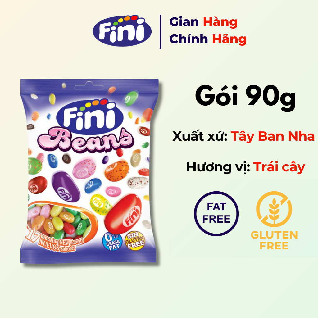 - Kẹo dẻo FINI Beans 85g với hình các hạt đậu ngộ nghĩnh. Mỗi hạt là một bất ngờ và hứng thú mới lạ với các vị trái cây đa dạng. Độ mềm vừa