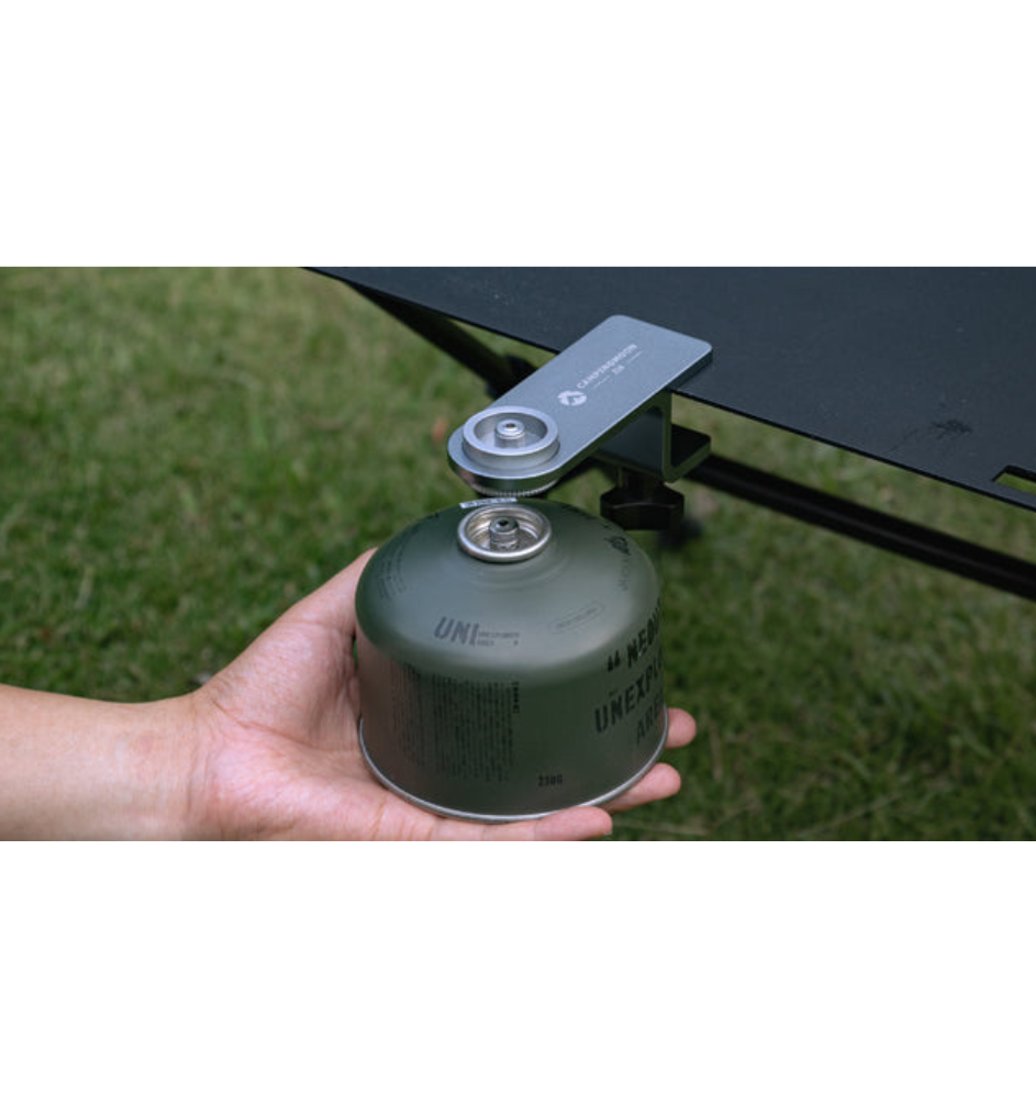 - Có thể kết nối nhiều ống dẫn tùy chọn để đảm bảo nhiên liệu được dẫn đều. Có thể sử dụng làm chân đế cho đèn gas bằng cách gắn một phụ kiện kẹp vào bàn hoặc kệ, sau đó đặt trụ đèn lên. Kết nối ống nối dài đa năng tùy chọn ở phía trên giúp nhiên liệu tránh xa nguồn nhiệt và giải phóng không gian bàn. Vì gas và đèn gas thường nặng, phần kẹp sử dụng cấu trúc kẹp đơn giản, cứng cáp. Kẹp tương thích với các loại bàn có độ dày từ 1 đến 25 mm và có thể kết nối với hầu hết các loại bàn ngoài trời, bao gồm Bàn CK-3650, Bàn Slim Roll T-520 và Bàn Tactical T-510. Nó có thể được gắn vào đáy của Chân đế Thông minh như một bộ chuyển đổi đệm cho Chân đế Thông minh Z01. Bằng cách kẹp nửa trên bằng nhôm vào kẹp, bạn có thể tạo ra một bàn phụ cho Chân đế Thông minh, vì vậy nó có thể được sử dụng theo nhiều cách khác nhau tùy thuộc vào ý tưởng của bạn.